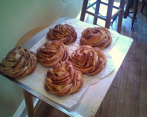 This was a 4 hour undertaking but totally worth it. Basically you make the dough and go do other stuff for 3 hours and then form them and bake them for a half hour. While mine was rising I made muffins and a birthday cake. I used amy stand mixer with a dough hook to make my dough even though they used a whisk.